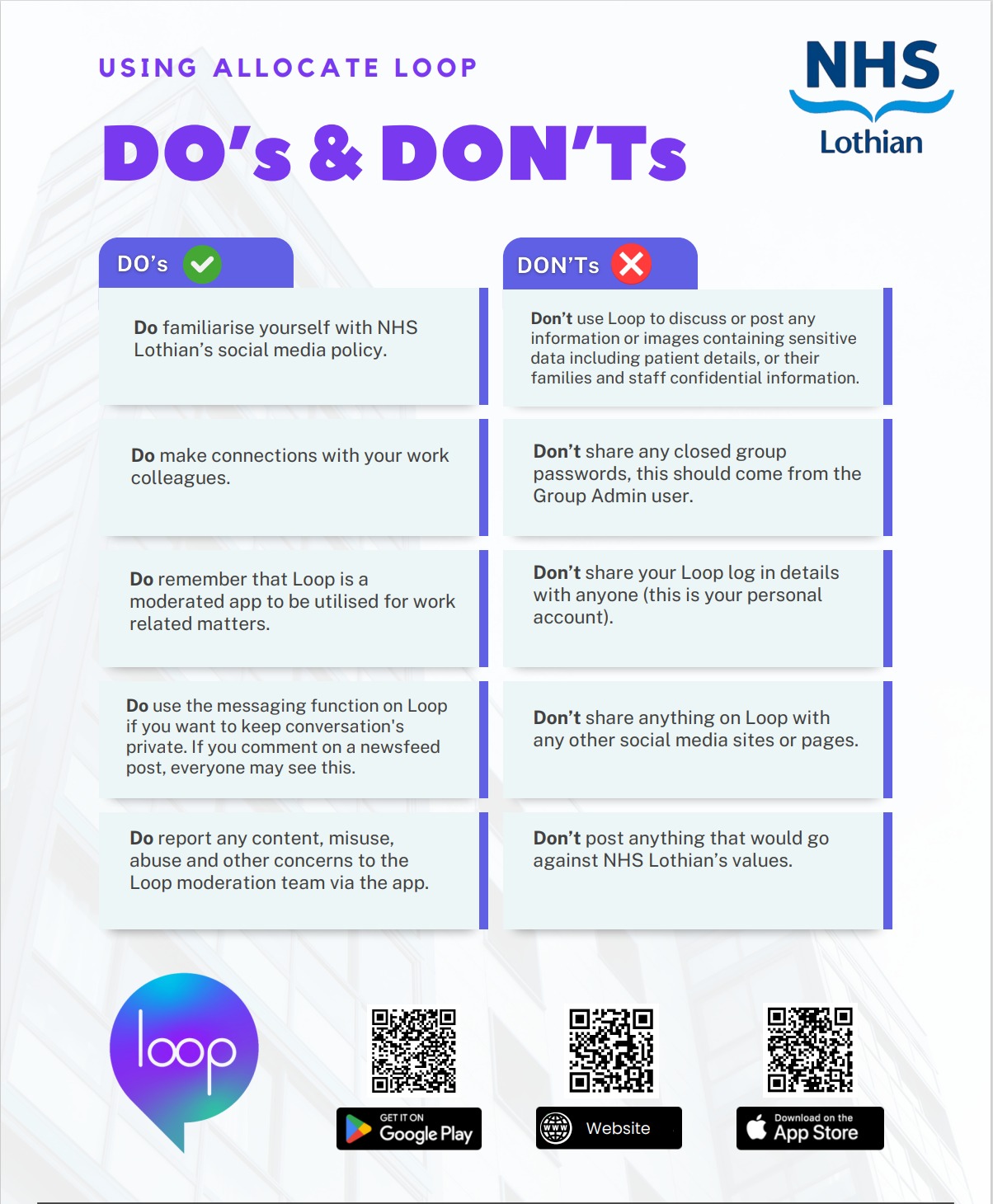 Loop is a brand-new app for health and care workers that allows them to stay connected with their workmates, stay in the loop with the latest news from NHS Lothian and be in full control of their work life.
